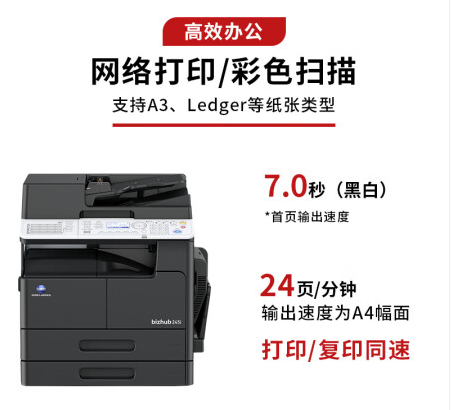 柯尼卡美能达/KONICA MINOLTA bizhub 245i 黑白激光/鼓粉分离/A3/多功能一体机